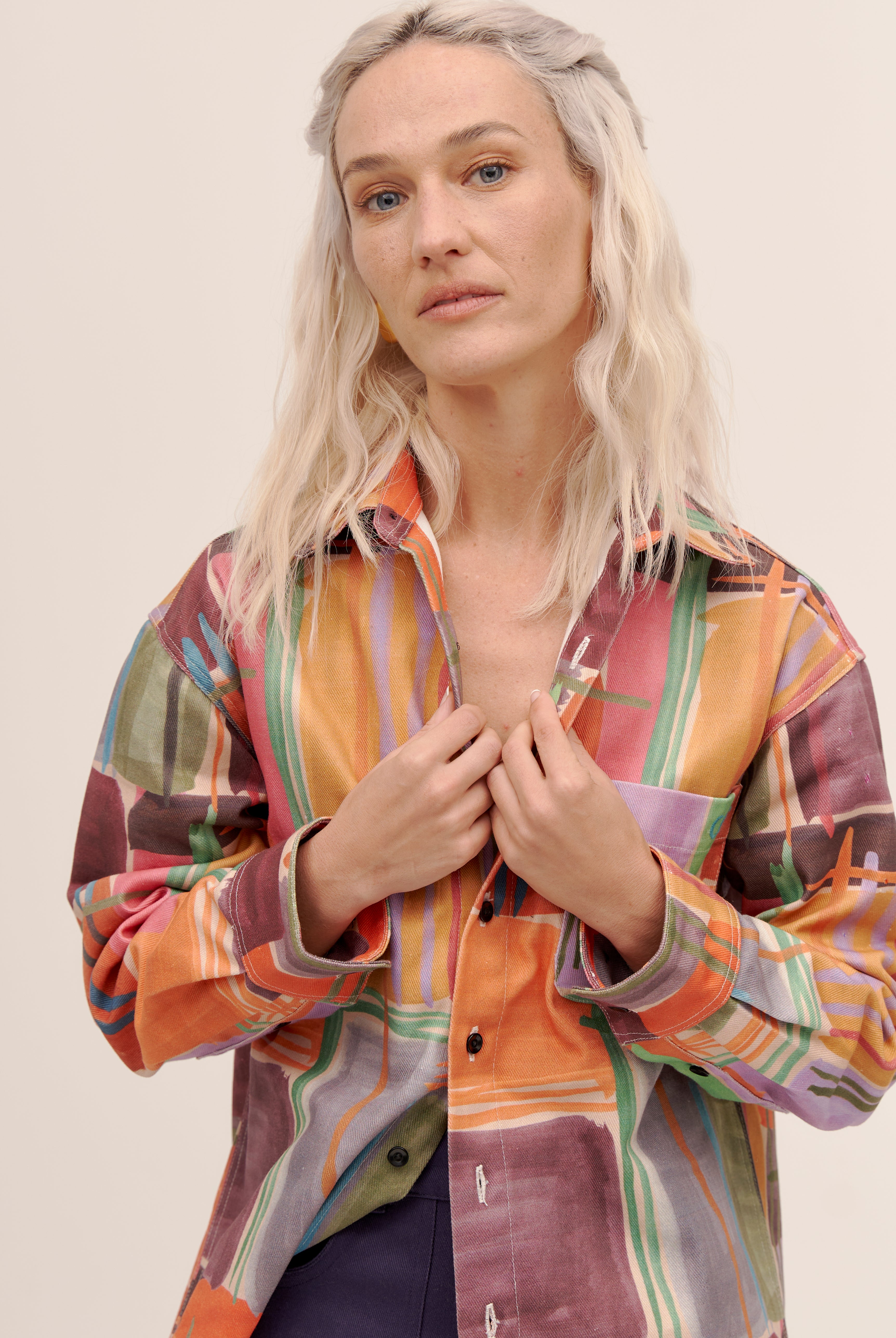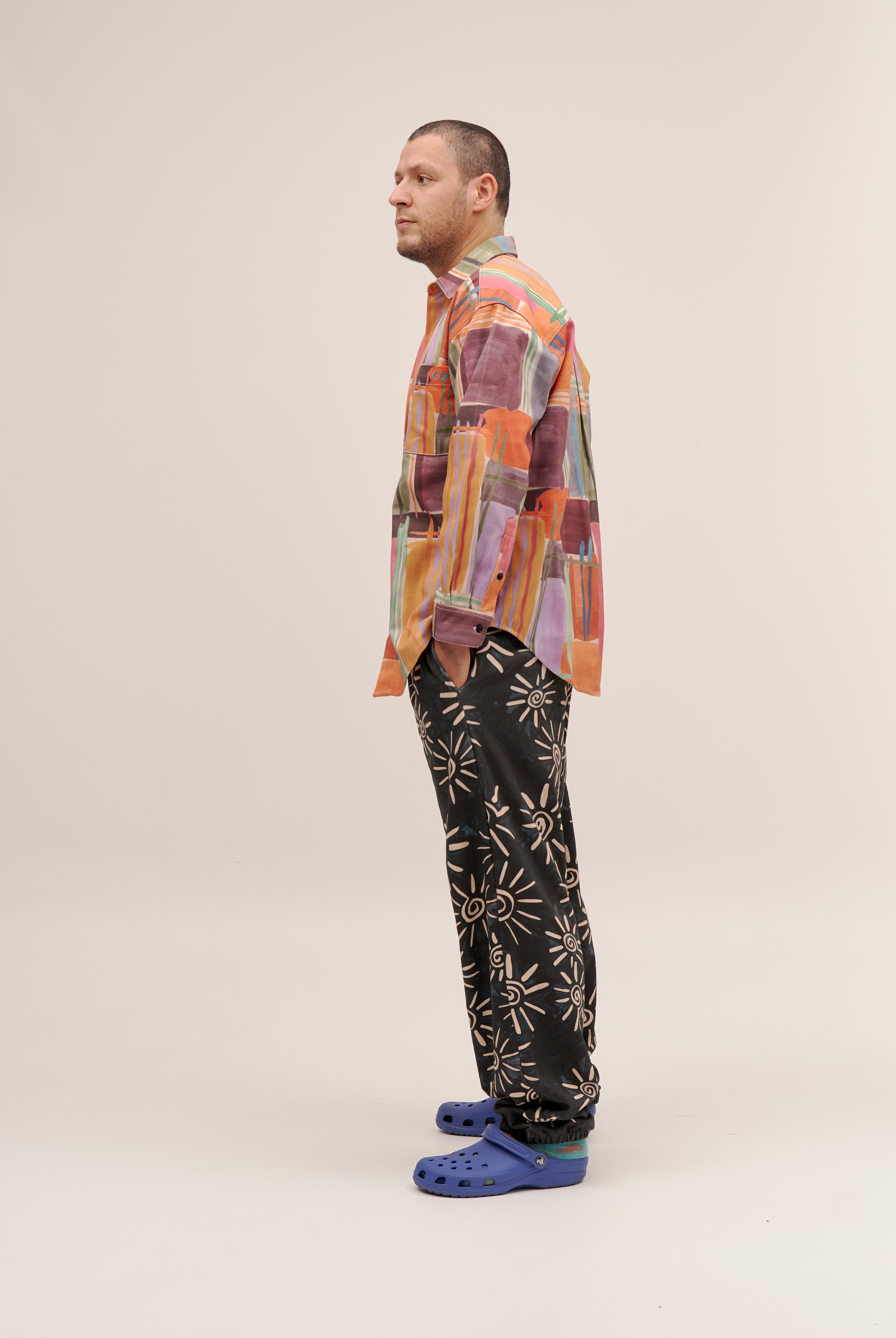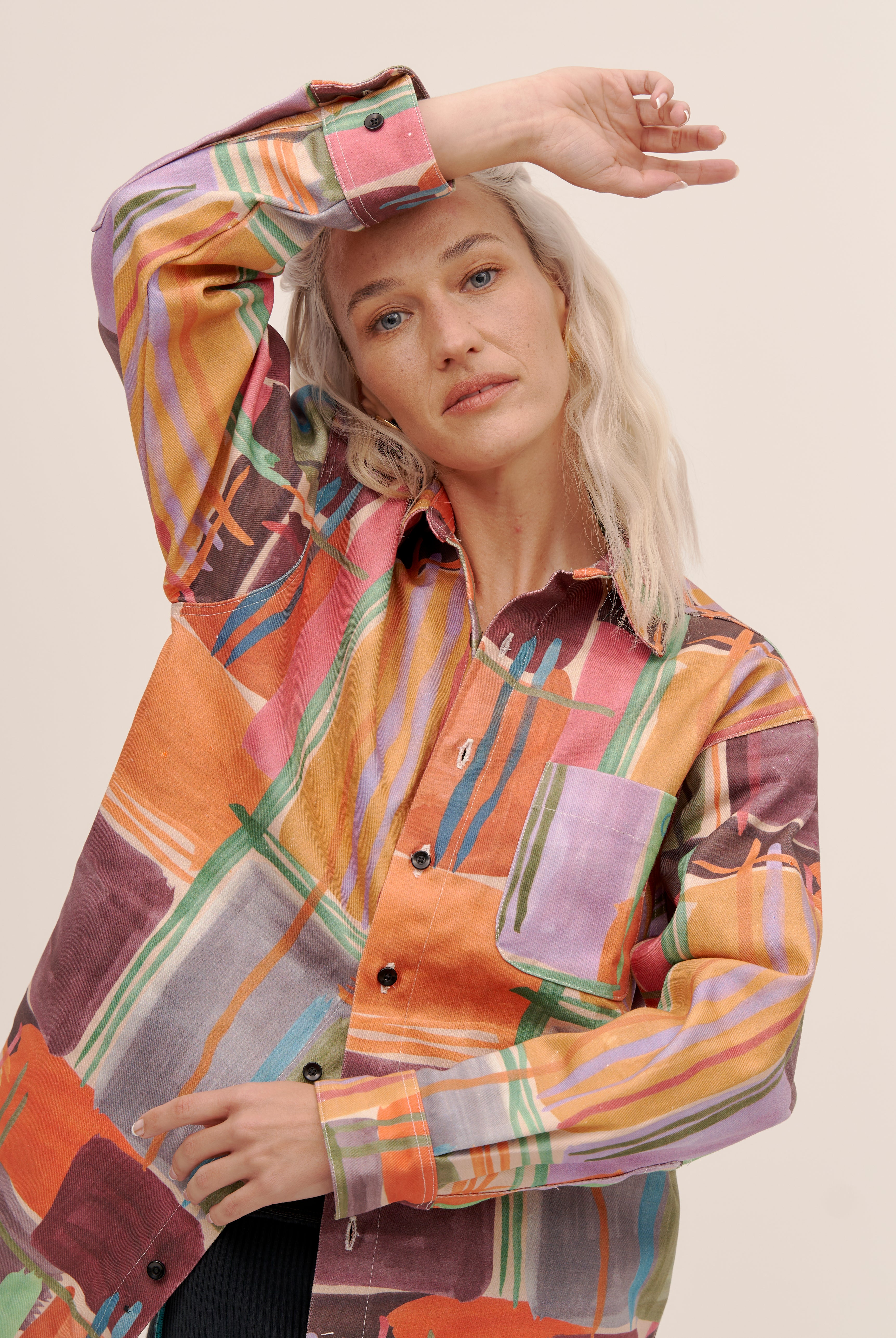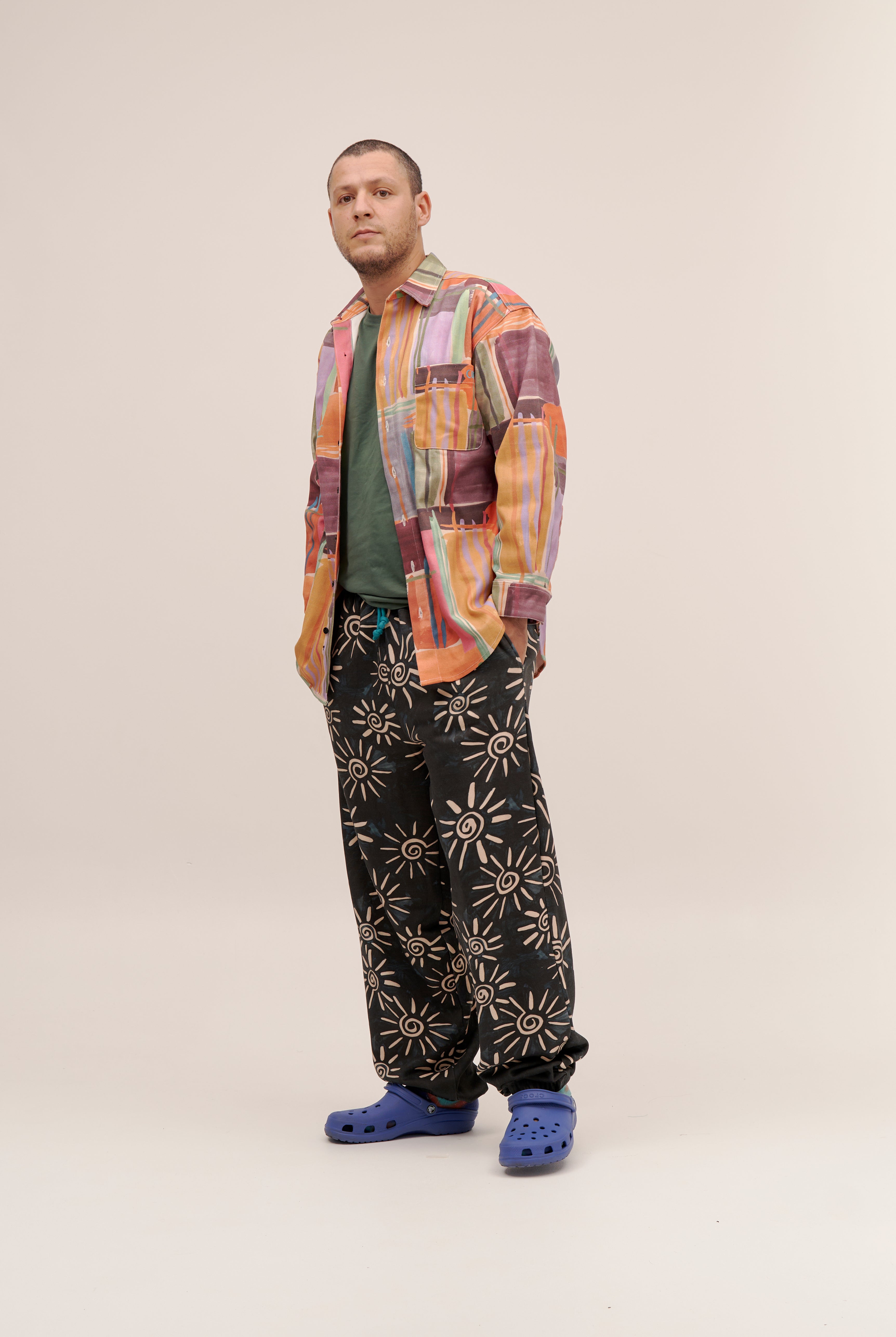 Life is a journey defined by the extremes of experience and this collection was designed in an extremely challenging period in Jaz’s life. The almost monochrome Sunburst print and muted cacophony of Brushstrokes were painted in a period of depression that has thankfully passed. These are bold fun prints that stand in the face of adversity and bring a little joy whatever else your day has in store.