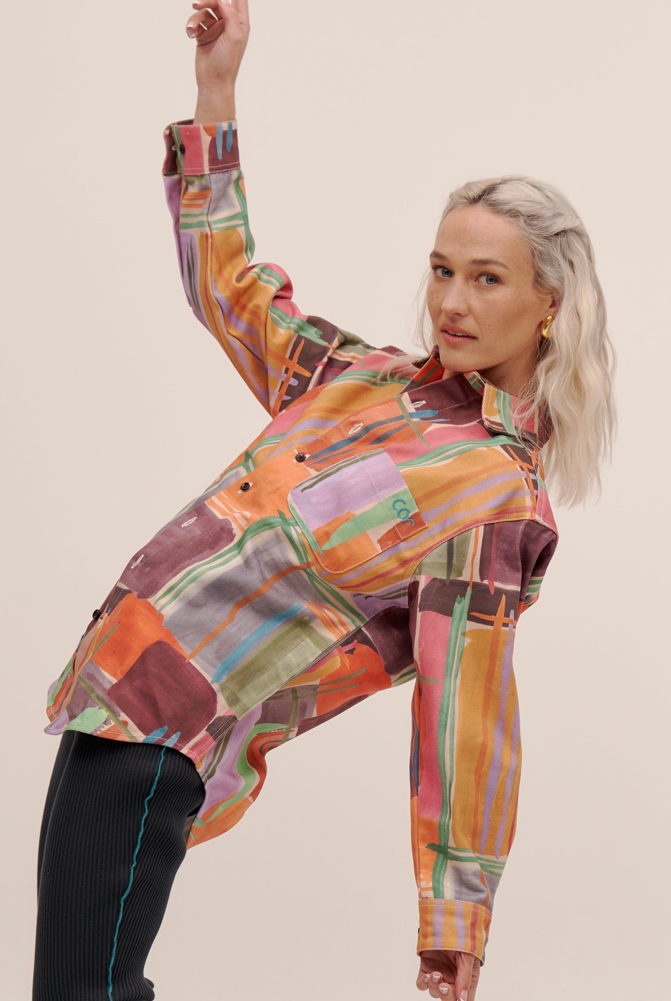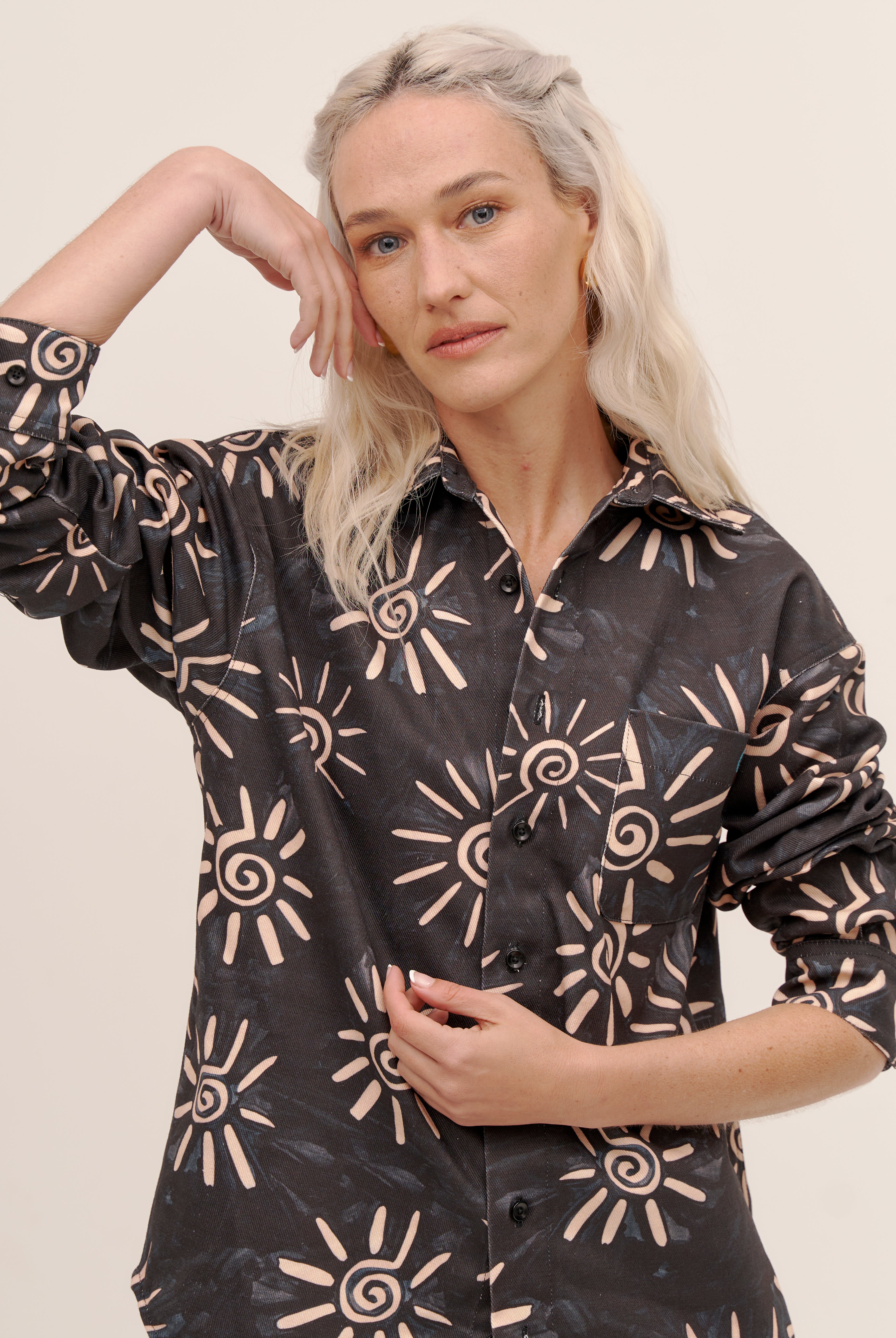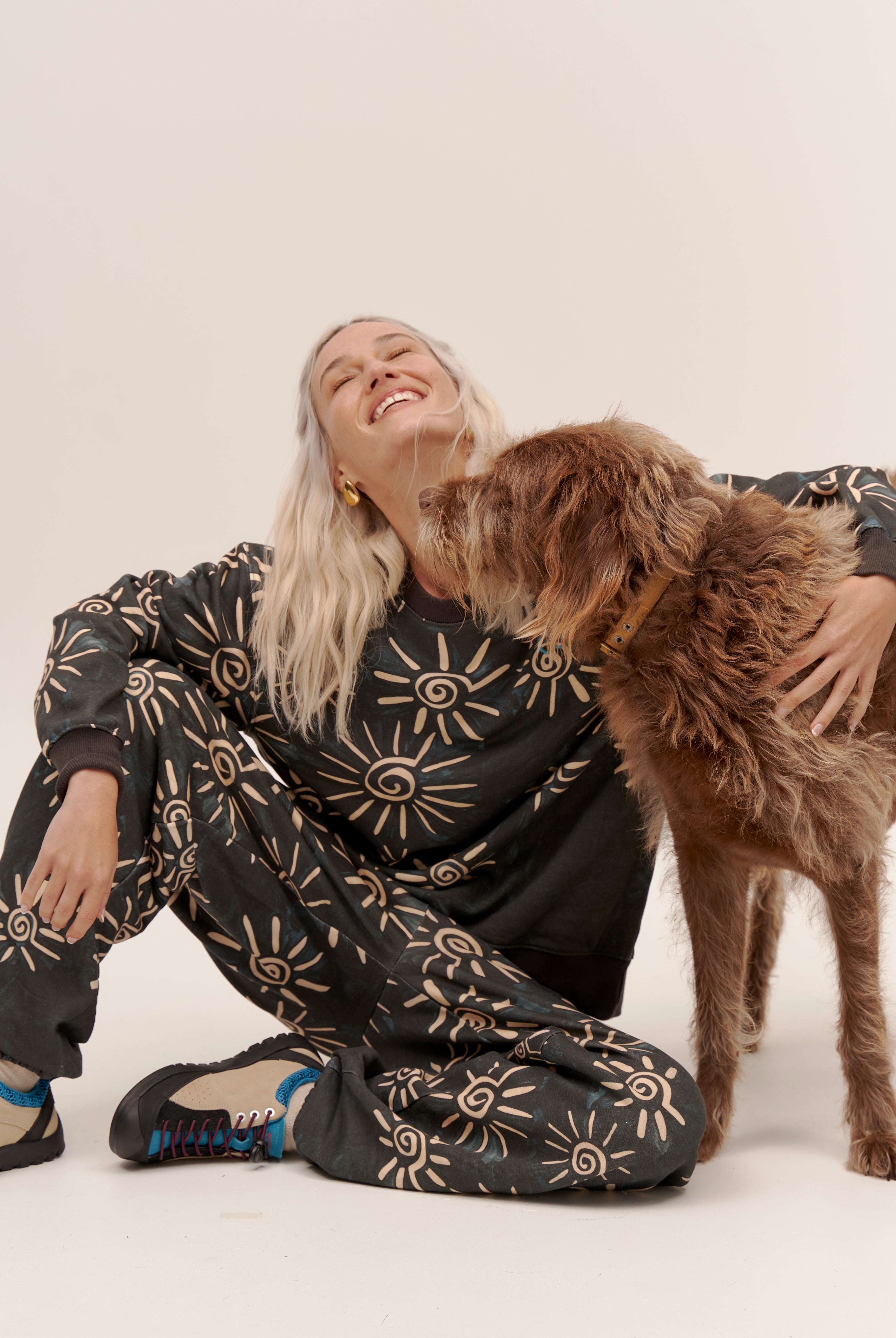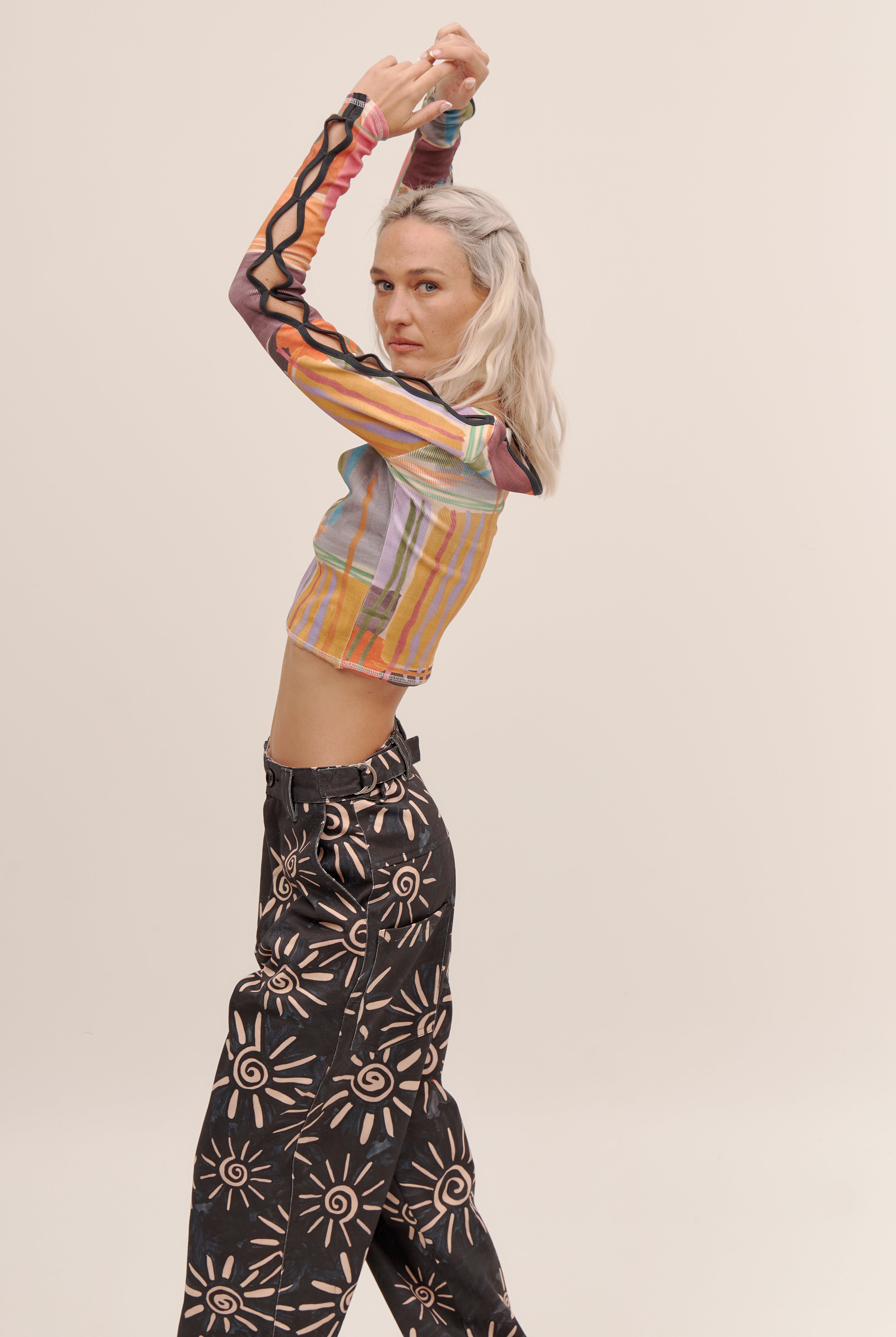 Life is a journey defined by the extremes of experience and this collection was designed in an extremely challenging period in Jaz’s life. The almost monochrome Sunburst print and muted cacophony of Brushstrokes were painted in a period of depression that has thankfully passed. These are bold fun prints that stand in the face of adversity and bring a little joy whatever else your day has in store.
