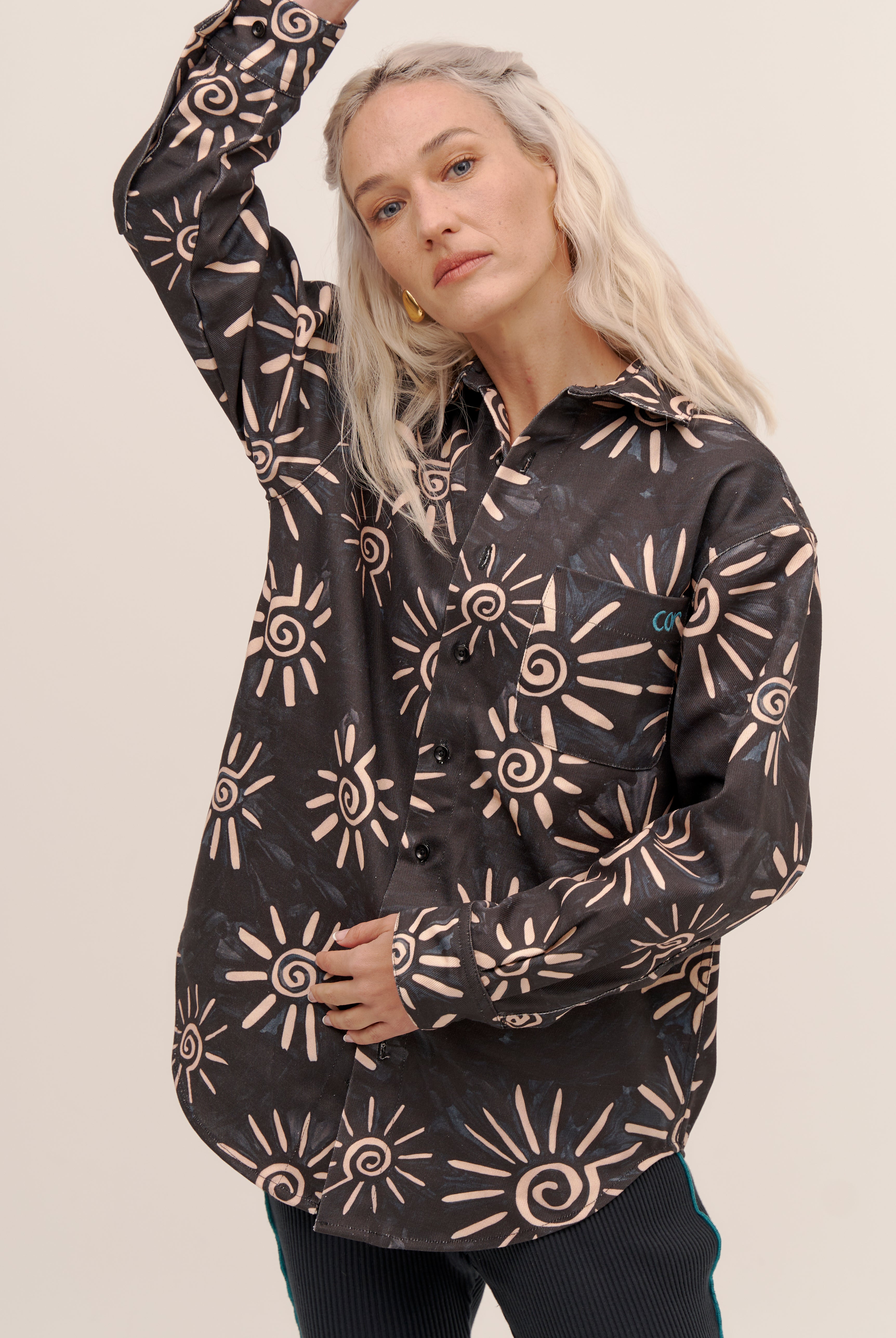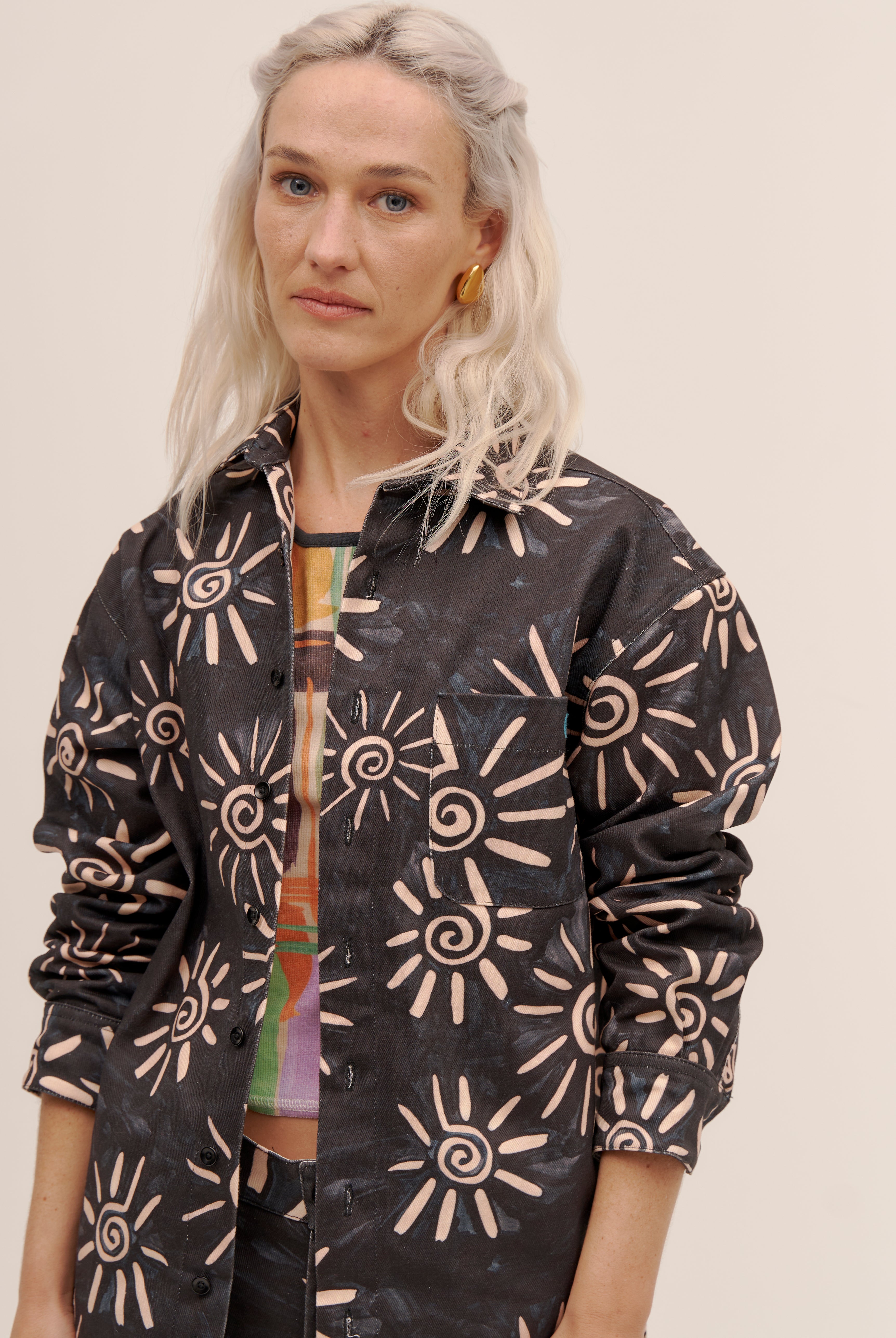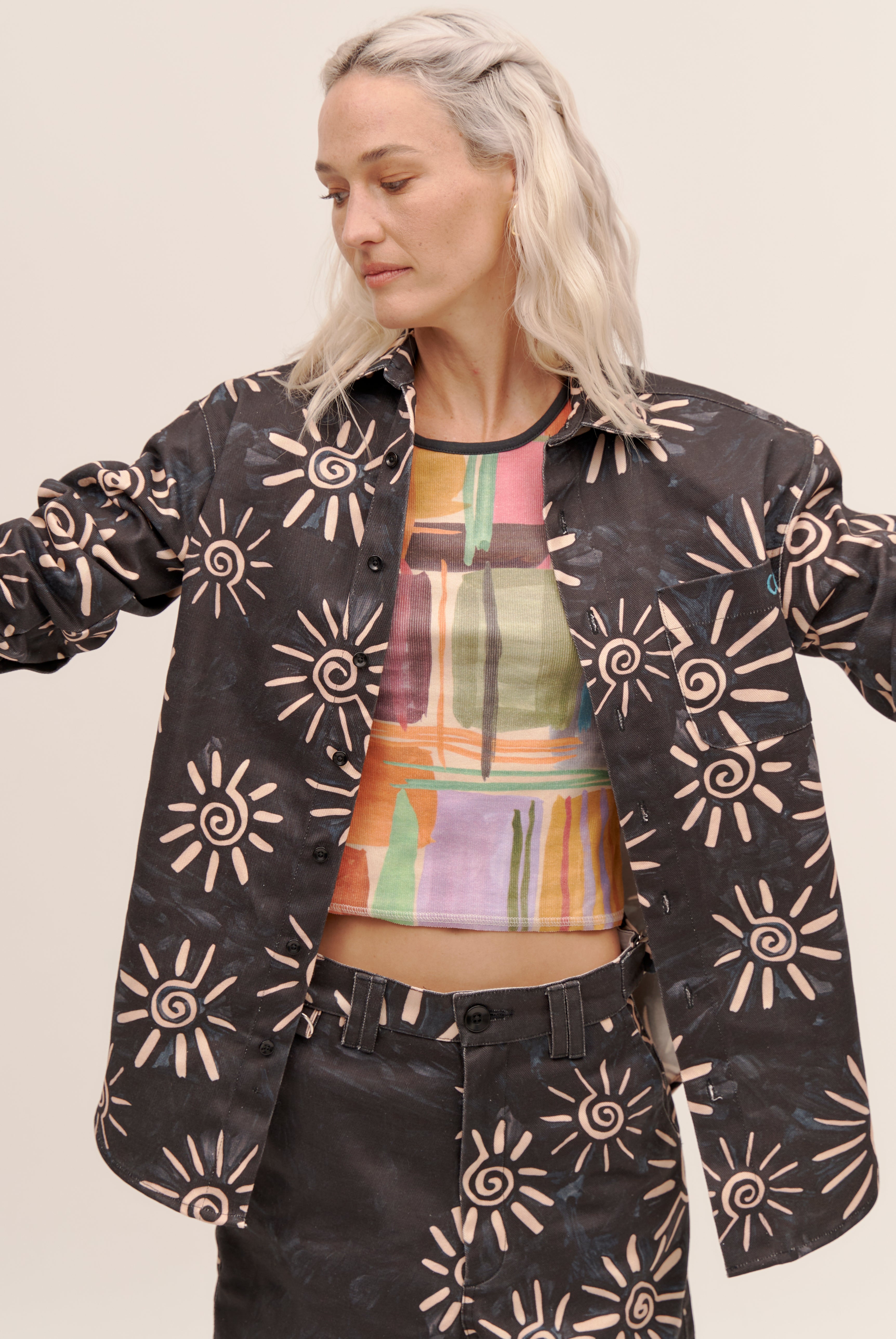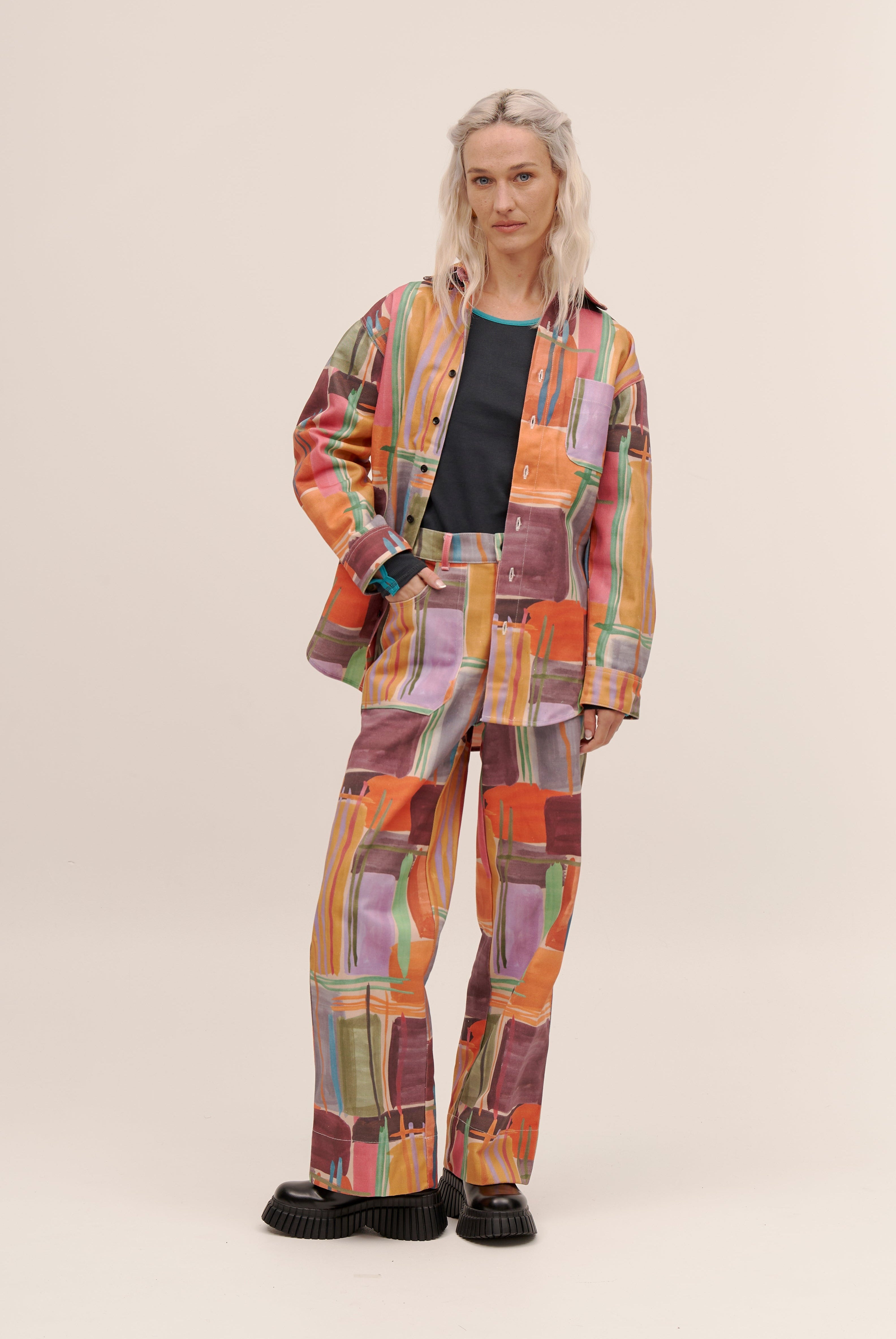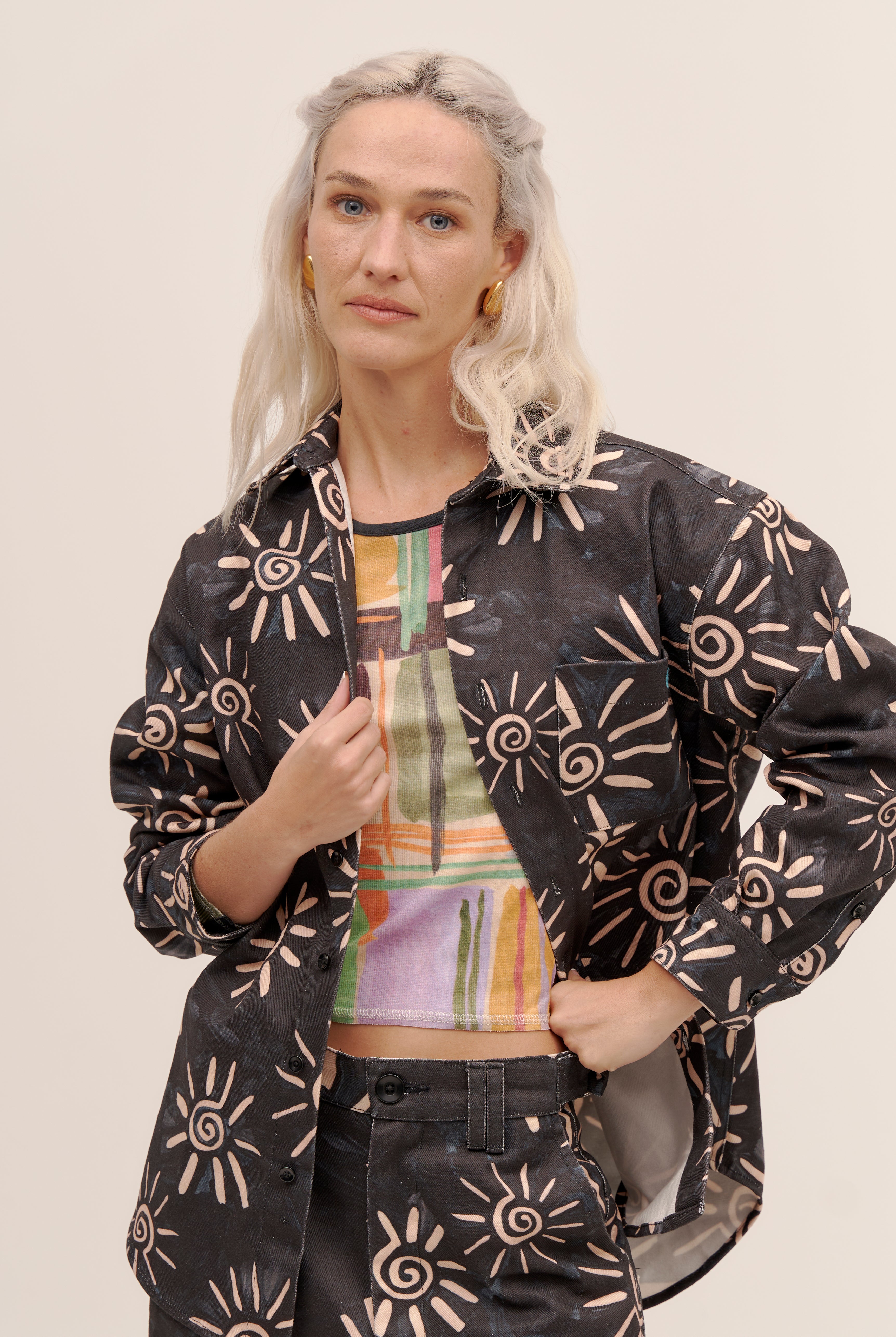 Life is a journey defined by the extremes of experience and this collection was designed in an extremely challenging period in Jaz’s life. The almost monochrome Sunburst print and muted cacophony of Brushstrokes were painted in a period of depression that has thankfully passed. These are bold fun prints that stand in the face of adversity and bring a little joy whatever else your day has in store.