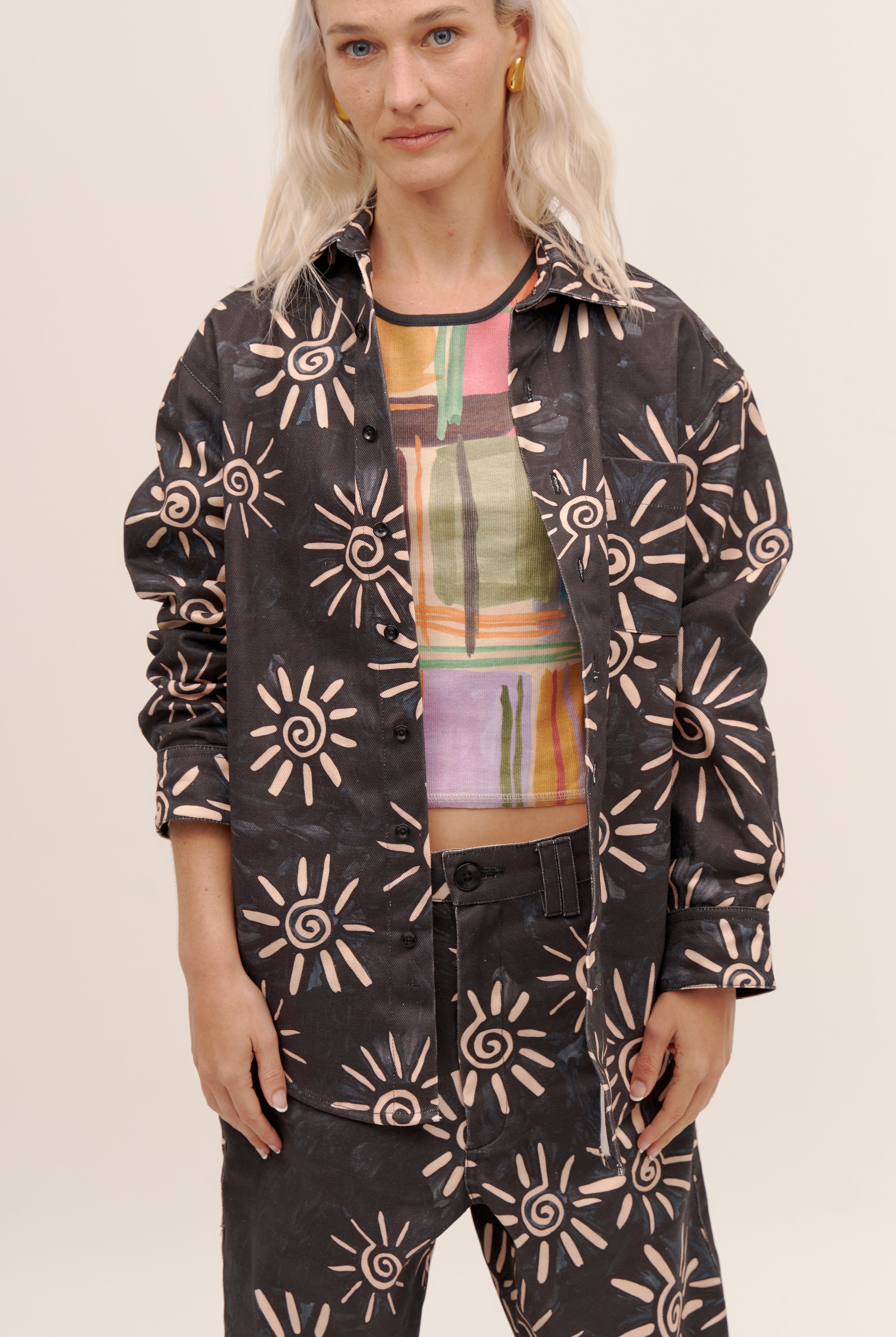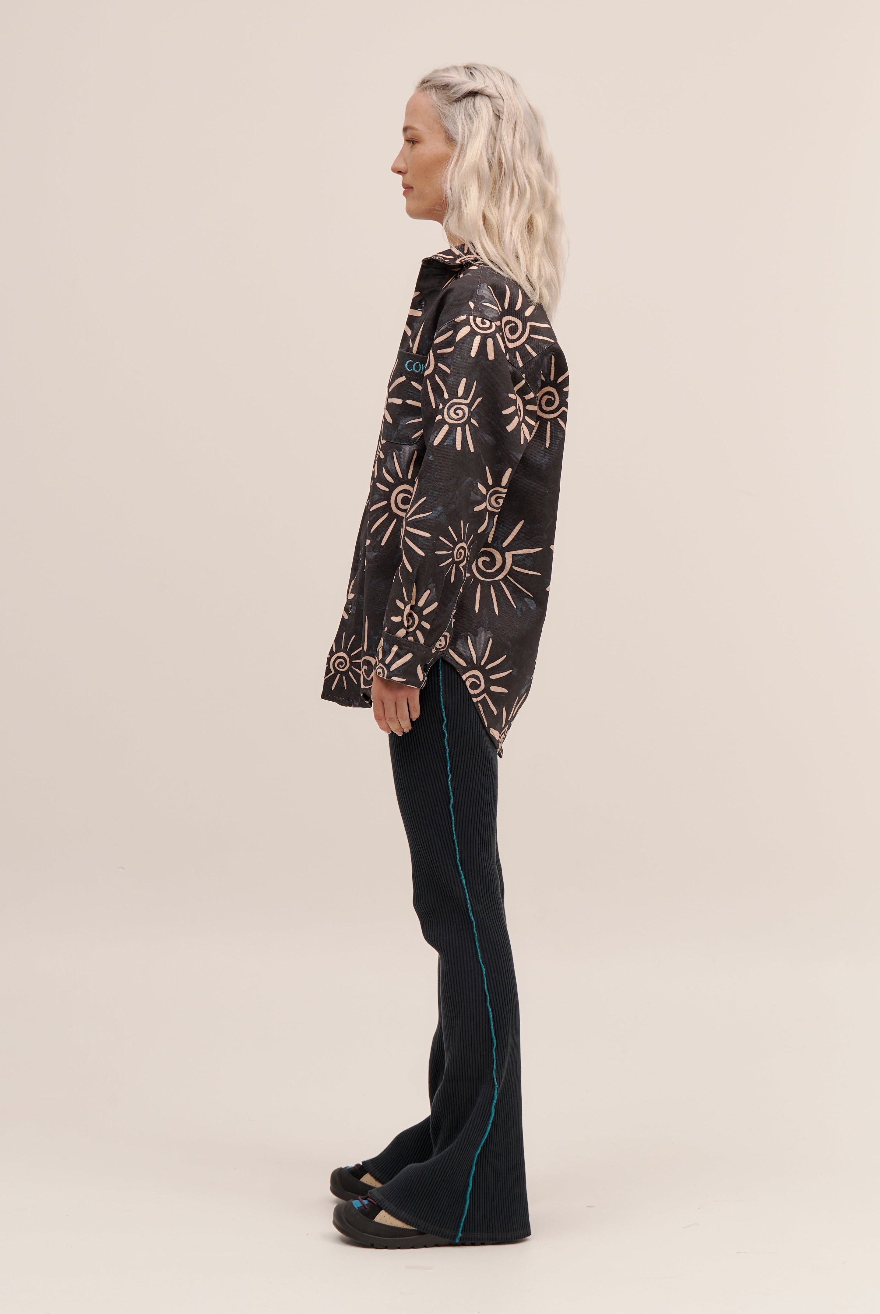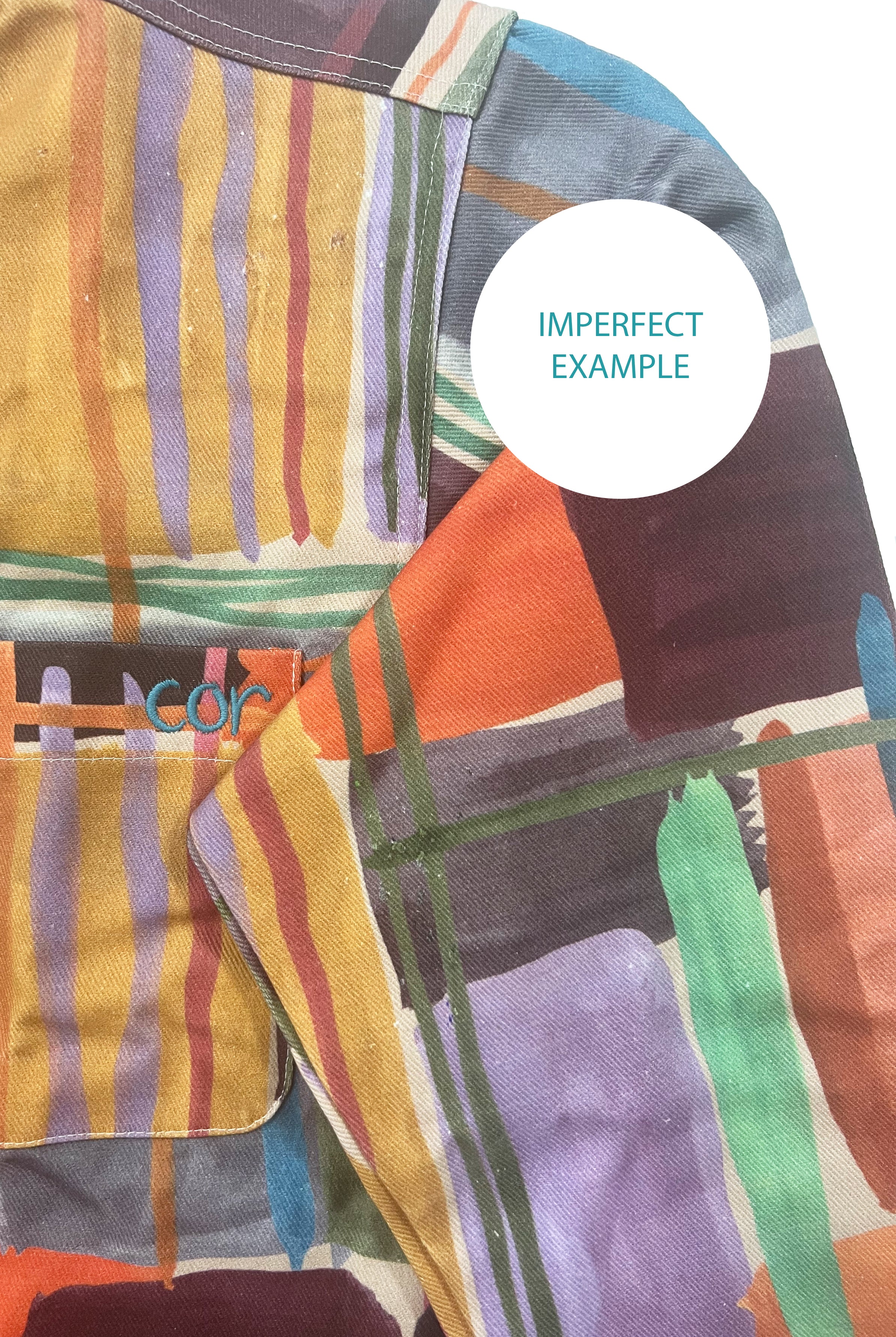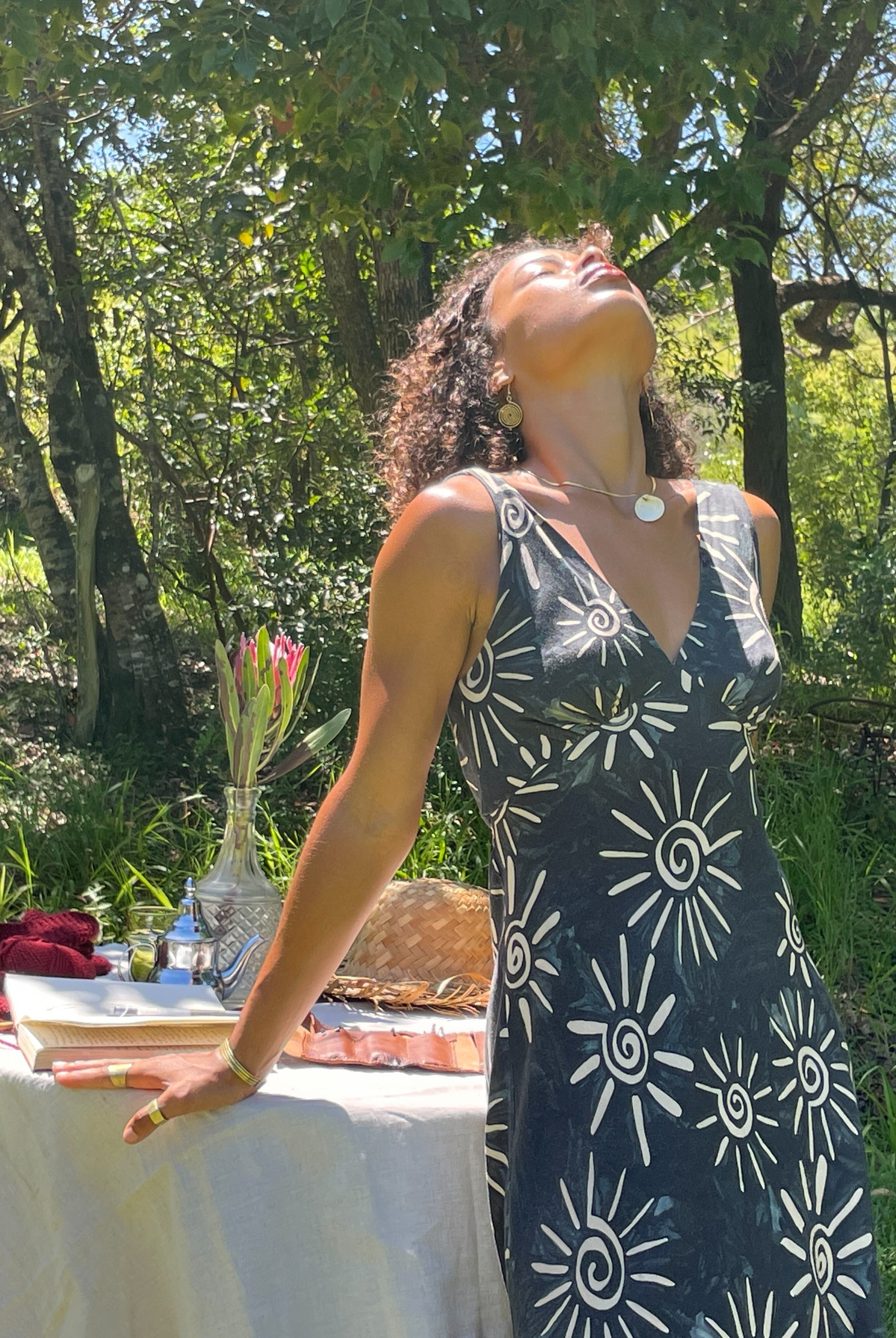 Life is a journey defined by the extremes of experience and this collection was designed in an extremely challenging period in Jaz’s life. The almost monochrome Sunburst print and muted cacophony of Brushstrokes were painted in a period of depression that has thankfully passed. These are bold fun prints that stand in the face of adversity and bring a little joy whatever else your day has in store.