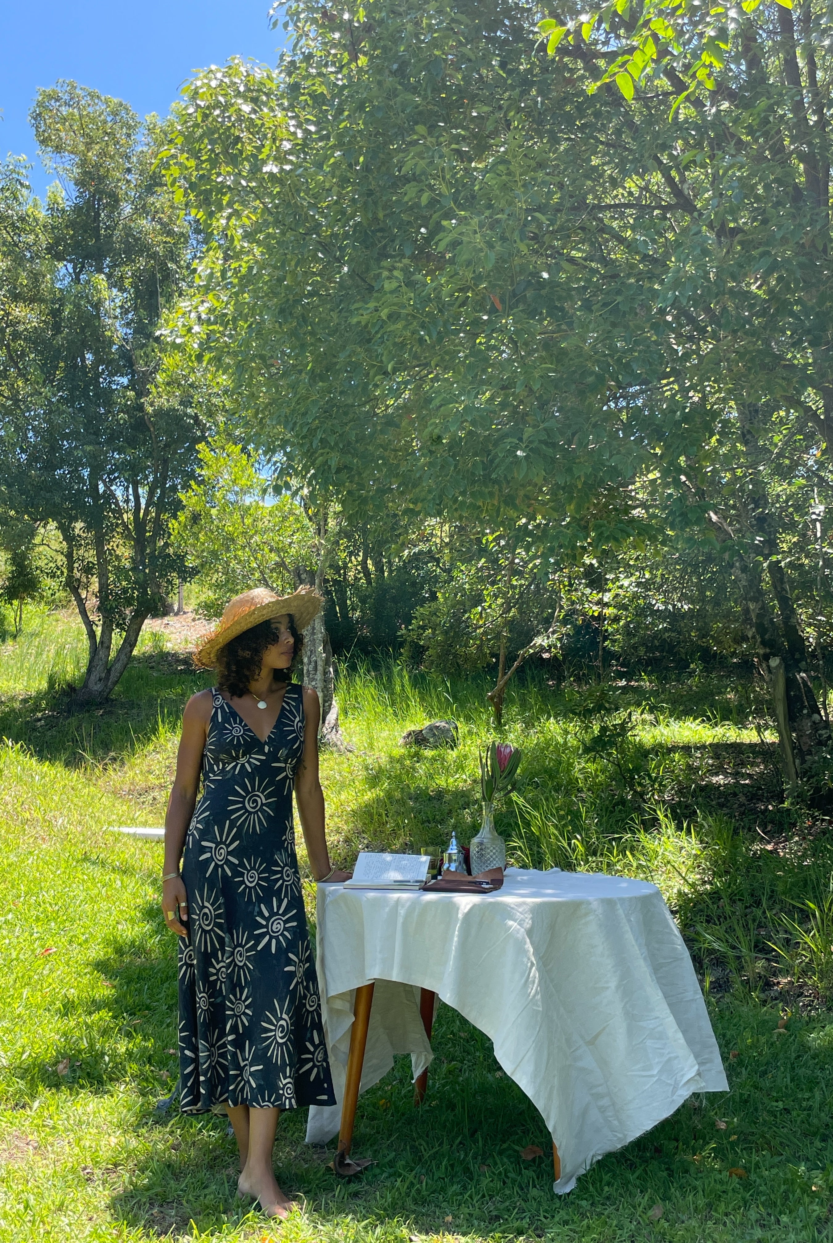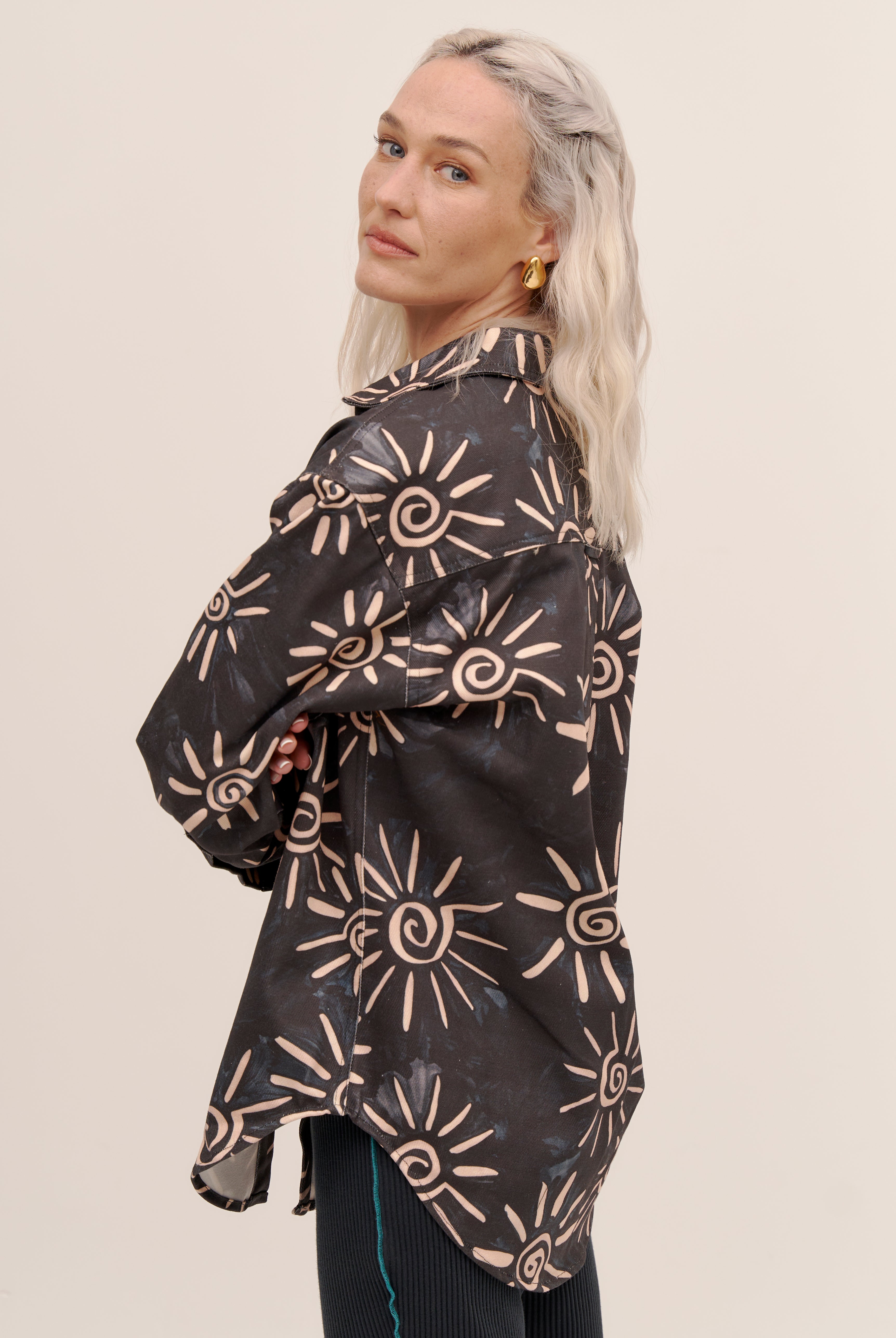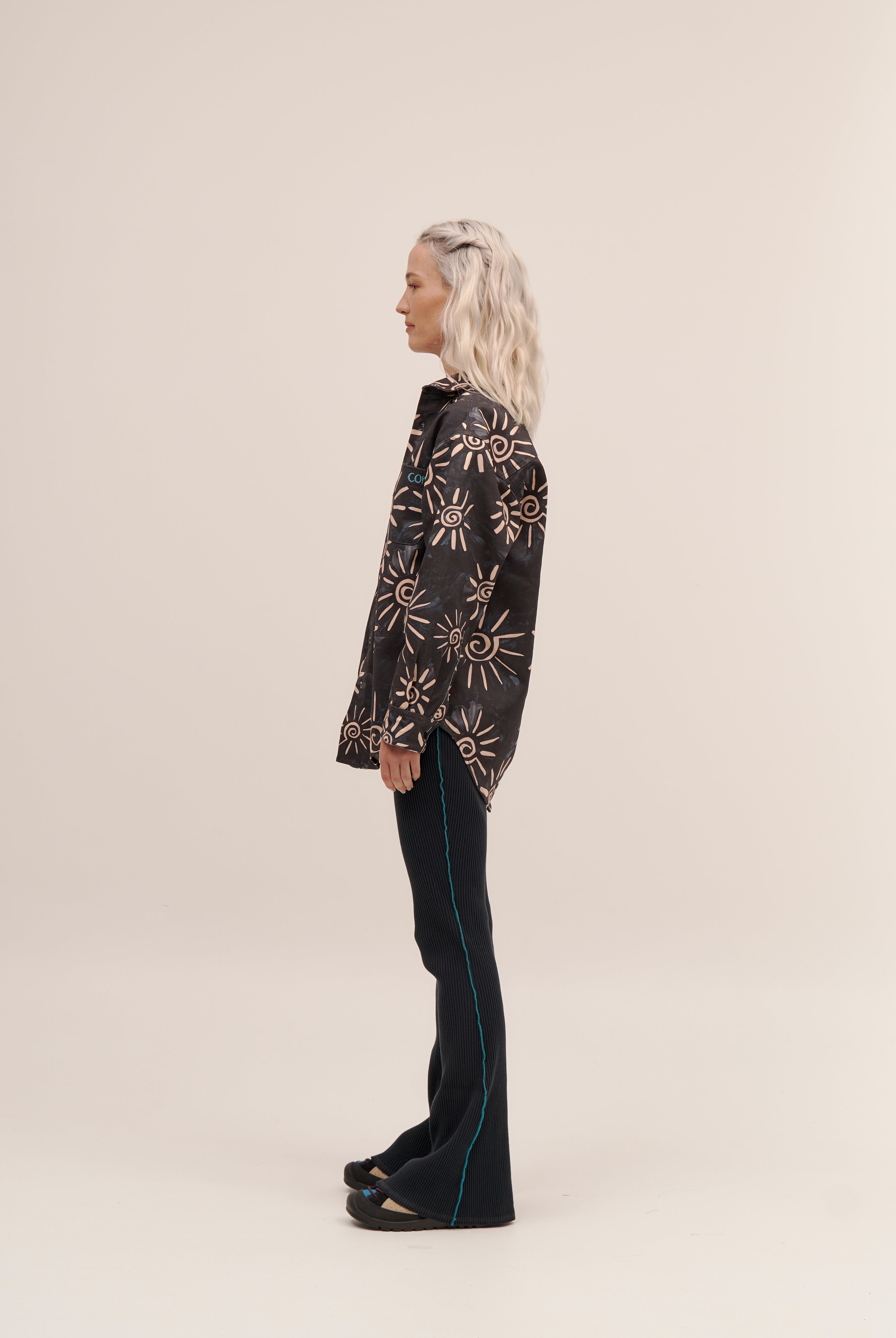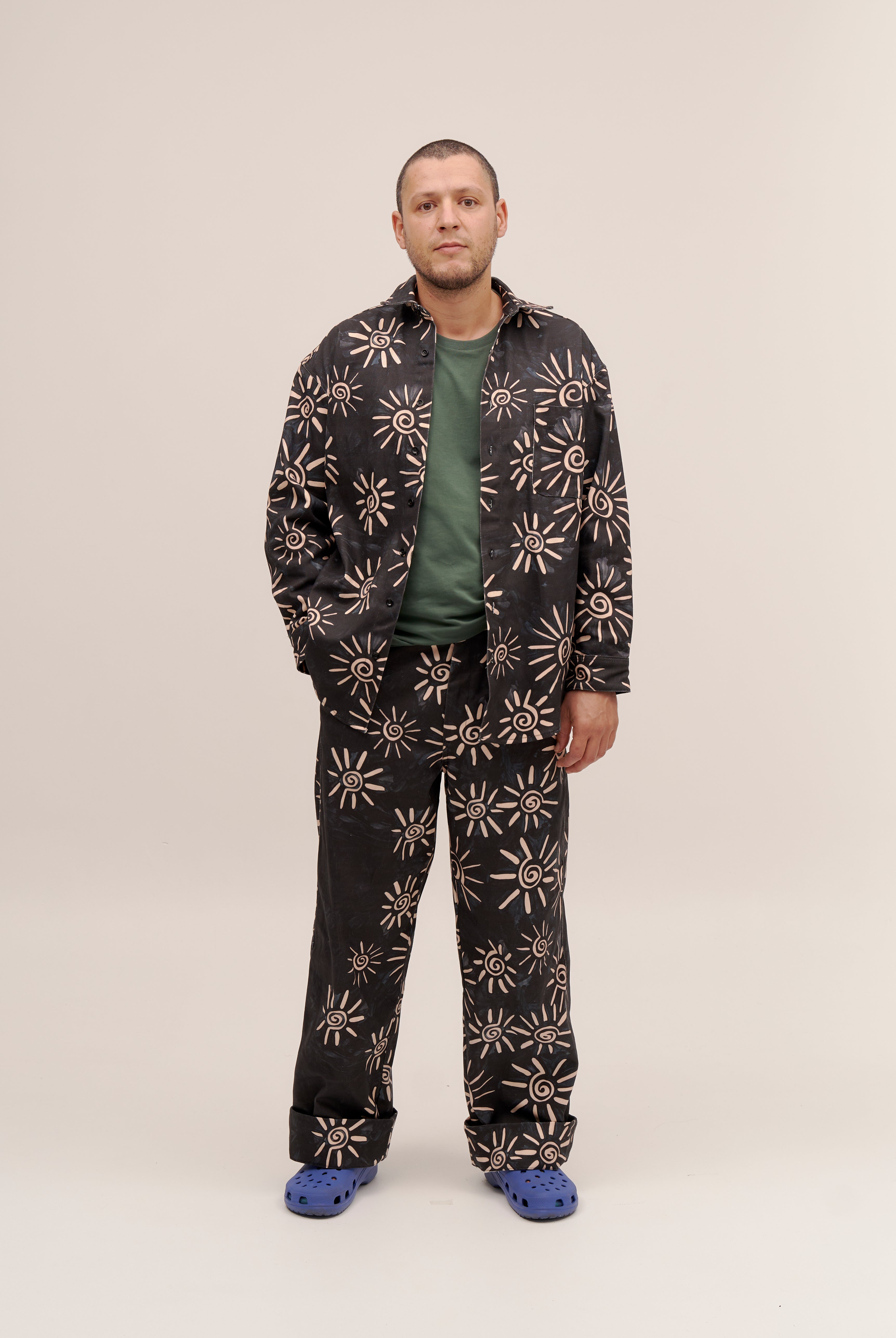 Life is a journey defined by the extremes of experience and this collection was designed in an extremely challenging period in Jaz’s life. The almost monochrome Sunburst print and muted cacophony of Brushstrokes were painted in a period of depression that has thankfully passed. These are bold fun prints that stand in the face of adversity and bring a little joy whatever else your day has in store.