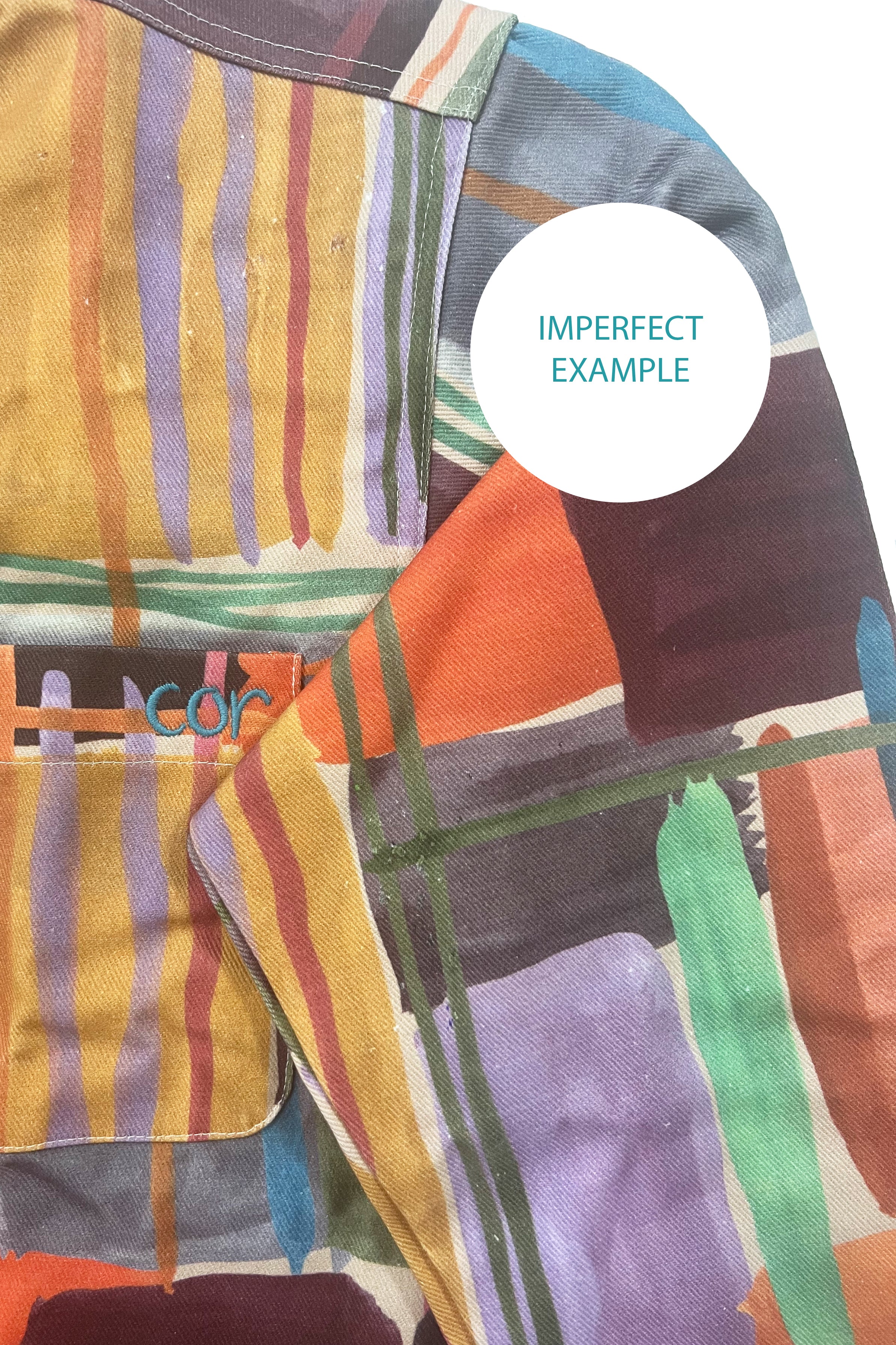 We had some small imperfections with the print on some of this fabric, in most cases it is hard to notice but we are very particular about quality and want you to know when you order a COR piece, you are getting what you pay for. In this case, you are getting a perfectly made, beautiful shirt with some minor imperfections to the fabric. In sporadic areas the ink has not taken during printing, leaving little white dots that in some cases the printers have tried to fill in, please see images for reference. In all cases, these are garments that we would be very happy to wear ourselves and we think you will be too.