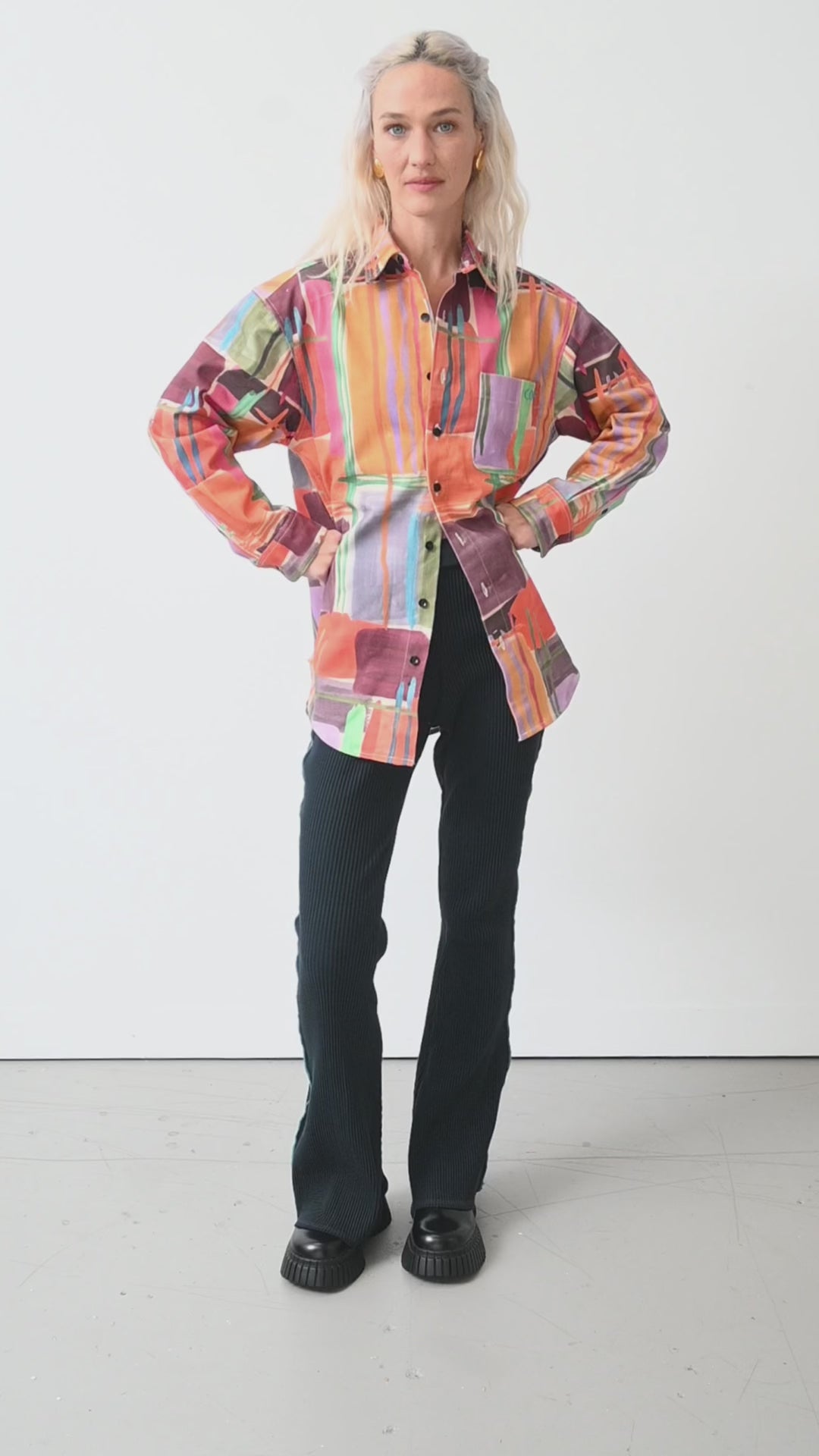 The organic cotton drill fabric of this garment will be quite crisp at first but will soften and drape more as it is washed and worn. Like your favourite jeans; they get better and softer as you live in them.
